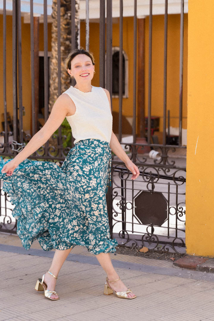 Versatilidad: Úsala de día con una polera básica y sandalias, o súmale accesorios dorados para elevarla en la tarde/noche. Para un total look, combínala con la Blusa Riana a juego.