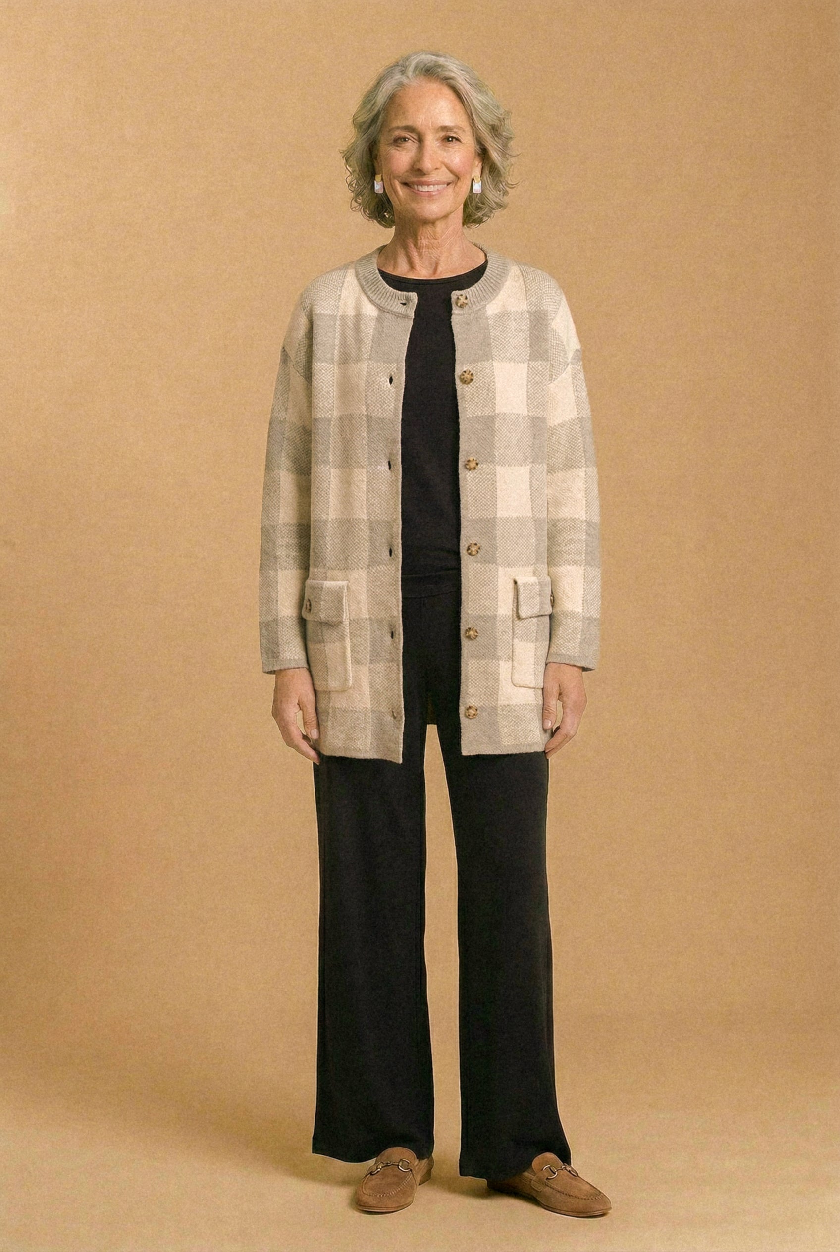 • Versatilidad: Puedes usarlo abierto o cerrado como chaqueta. Queda increíble con jeans, pantalones rectos o incluso sobre vestidos. El diseño en cuadros aporta un toque especial a cualquier look simple.